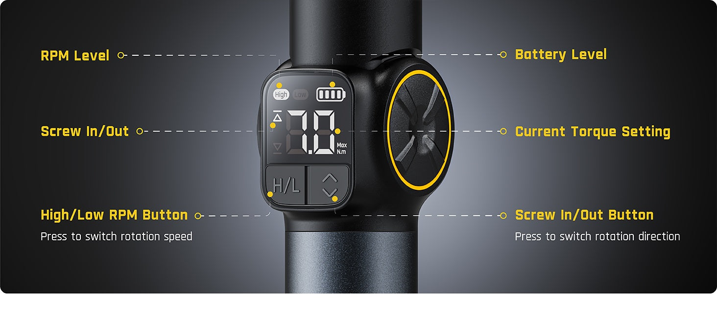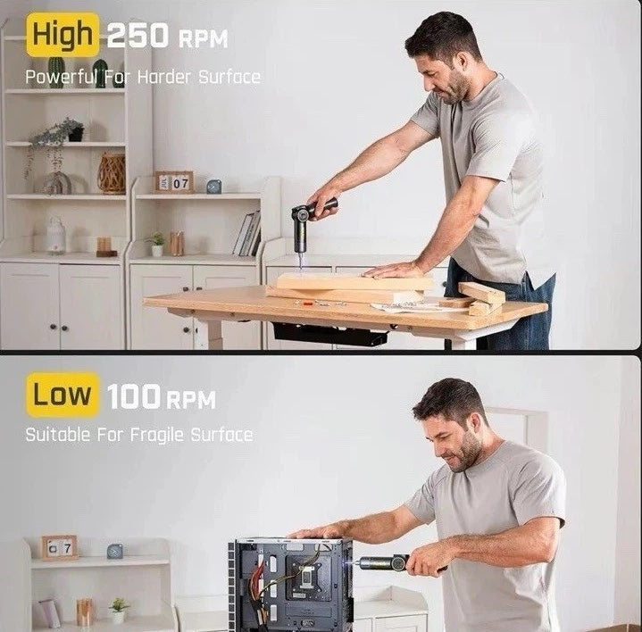 - Two Speed Modes: S1 APEX boasts two-speed modes: low speed (100RPM) and high speed (250RPM). Adjusted through tactile buttons, these modes are compatible with the screws and materials used, effectively enhancing the controllability of the task. This feature prevents excessive torque that could potentially damage screws and materials.