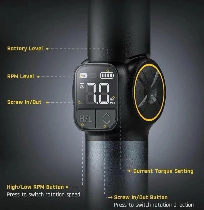 - Precision Adjustment Torque & Screen Display: You can adjust the torque through the torque ring with 8 settings to ensure precision, and visually monitor the real-time torque levels on the screen. This provides a more precise and professional performance in various tasks like computer repair, furniture installation, appliance disassembly, etc.